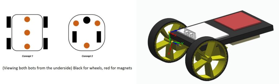 The team began by creating a concept based on Yusra’s idea. They decided to use one device on the inside of the window and another on the outside with magnets holding them together through the glass. This approach helps reduce the power needed which also reduces the weight of the robot. They also chose to use a heating element instead of a suction system. The heat will evaporate the condensation which means the robot does not need a tank to collect water.